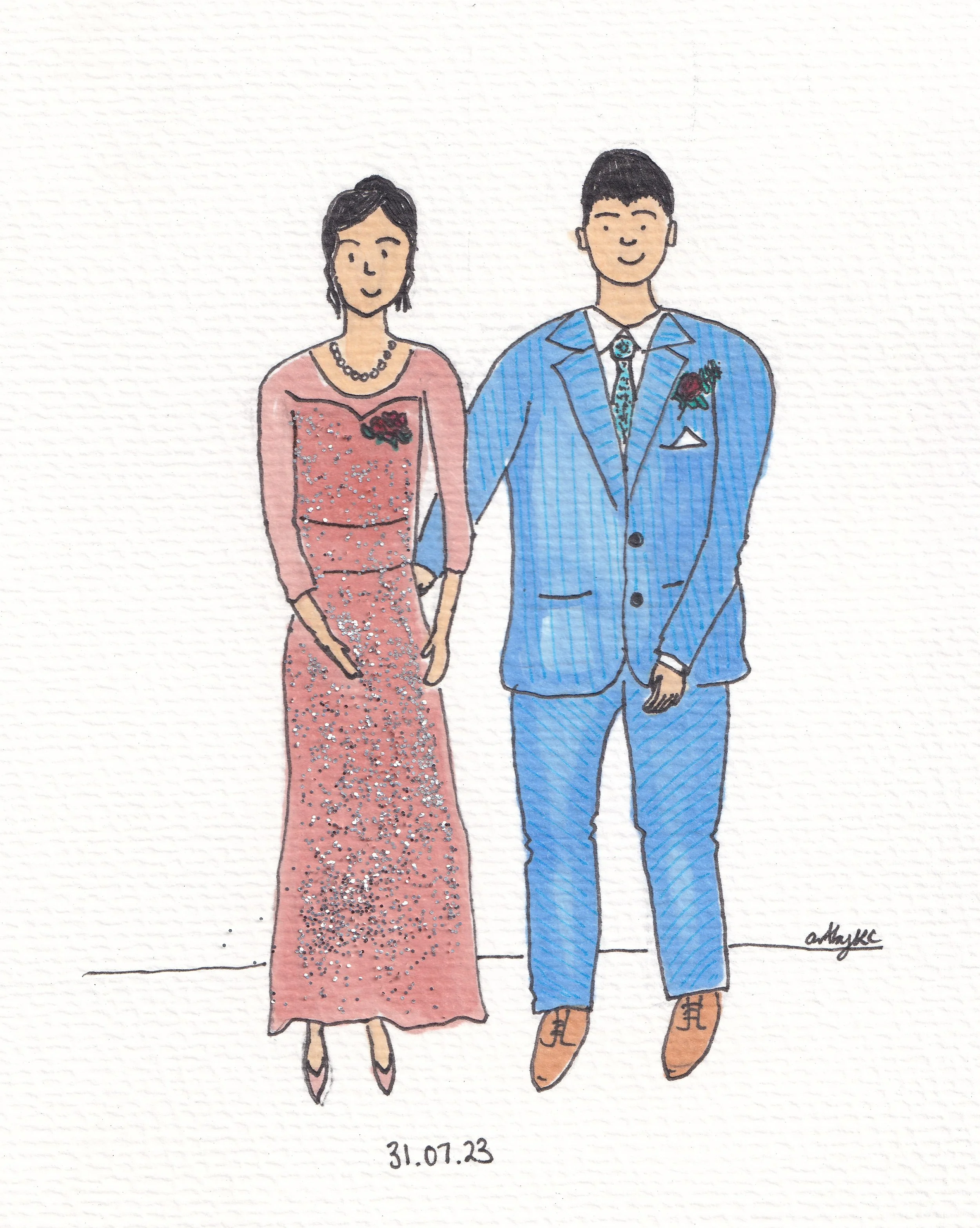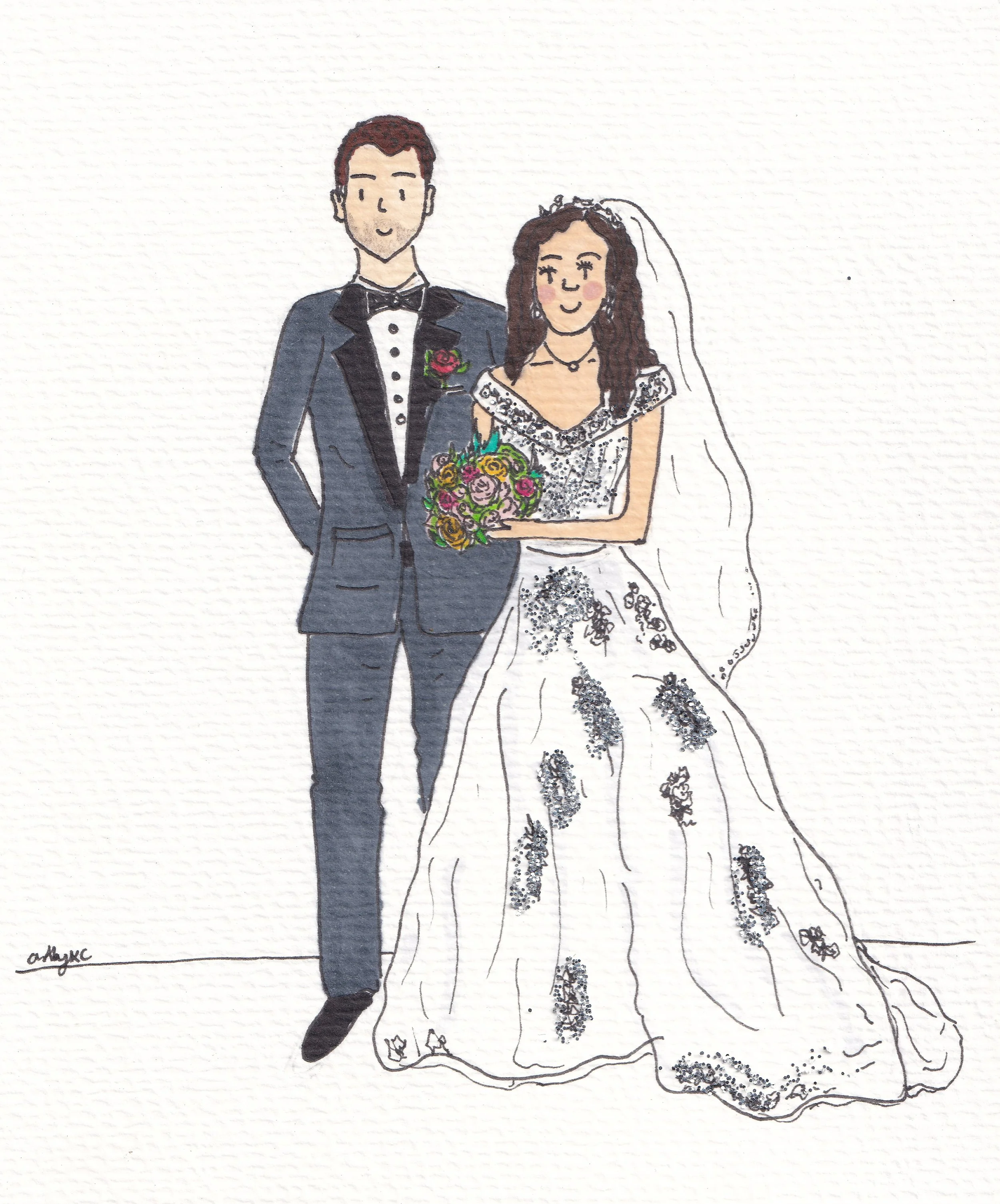 “I sent Karen a picture from my wedding day to draw and it’s come out lovely something to keep onto forever as a memory would definitely recommend - the attention to detail is beautiful’’