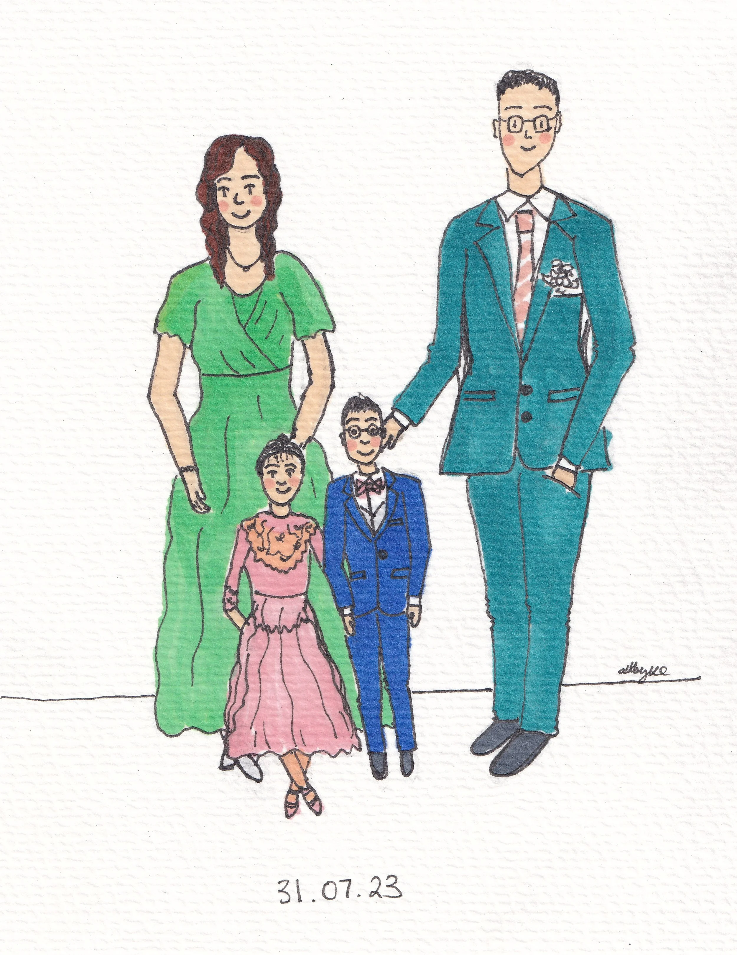 We aim to draw individuals in 10 mins, I can draw couples in 15mins (this is always dependent on outfits and group sizes)